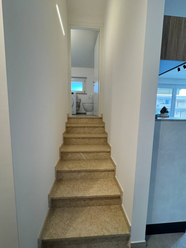 L'Immobiliare Unika propone in esclusiva di Vendita nel Comune di Fermo (FM), nel quartiere di San Michele, splendida soluzione abitativa indipendente luminosissima vista mare, inserita in un piccolo contesto immobiliare di sole tre unità. Trattasi di una proprietà da considerarsi pari al nuovo, di circa 100 mq, libera su tre lati, con vialetto d' ingresso privato al piano terra e scala interna di collegamento esclusiva al piano primo e al piano S1. L 'appartamento posto al piano primo si compone di ingresso, luminosa zona living con cucina a vista con accesso al terrazzo perimetrale di circa 25 mq e lavanderia/bagno di servizio. Proseguendo troviamo la zona notte che comprende una camera matrimoniale, seconda camera, terza stanza pluriuso tutte servite da terrazzo e bagno principale con doccia e finestra. La proprietà si completa di una comoda soffitta, cantina di circa 7 mq ideale per rimessaggio bici/moto o dispensa e posto auto scoperto in corte privata. Immobile con ottime finiture e materiali, pompa di calore per riscaldamento/raffrescamento ad aria canalizzato di ultima generazione, aspirazione centralizzata, allarme, zanzariere e tenda parasole. Possibilità di istallazione di un fotovoltaico. Immobile disponibile da subito, ottima posizione, in zona residenziale a due passi da tutti i servizi e dal mare. Ulteriori informazioni e dettagli presso il nostro studio. Classe energetica "A1". RIF. VV420. Immobiliare Unika 0734 300555 - 3271687900.